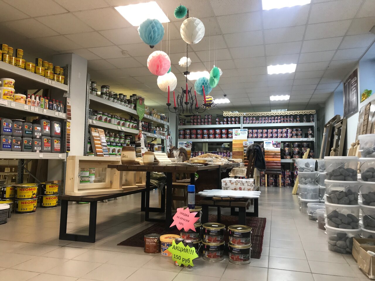 Широкий выбор лакокрасочных покрытий и не только). Спасибо огромное за профессиональных и очень внимательный подход, не первый раз покупаем там материалы (краску, джут, камень для бани, лавки …) и далеко не последний!
