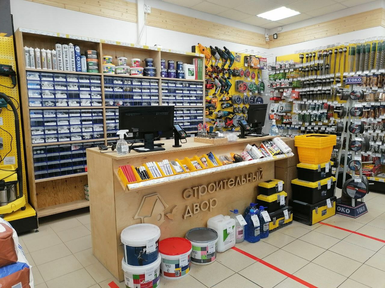 - Прокат инструментов; Наличие кофейного аппарата с недорогими напитками; Широкий ассортимент товаров; Вежливый и приветливый персонал; Хорошая замена крупным строительным базам
