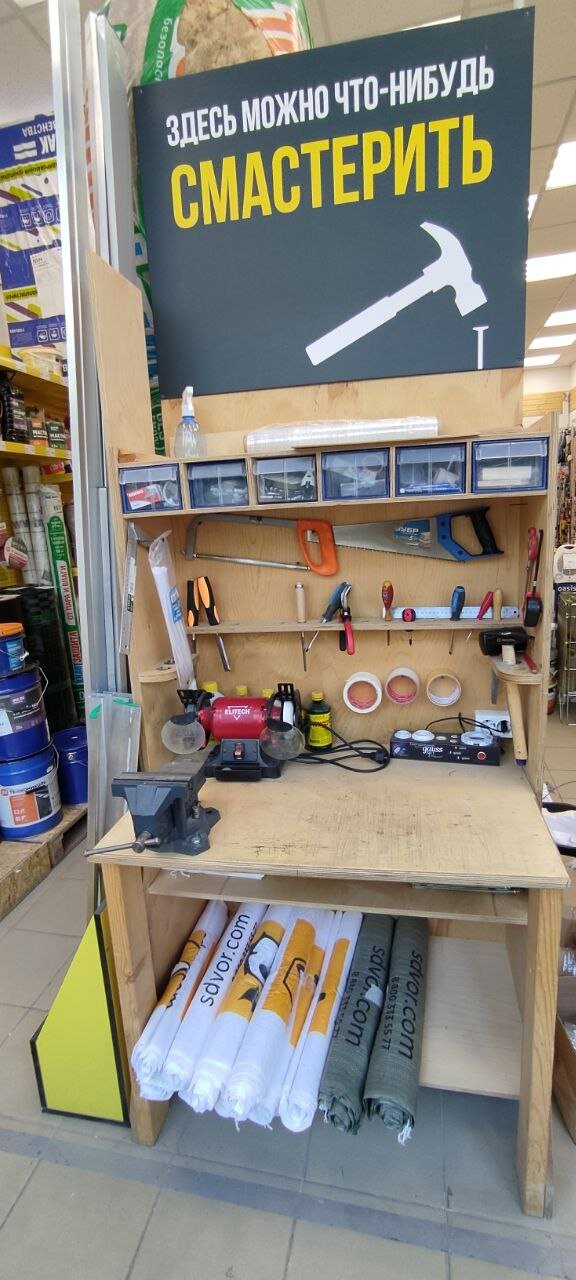Неплохой сетевой магазин строй товаров и инструментов в шаговой доступности. Магазин для тех, кто не хочет ехать в большой сетевой магазин, а предпочитает дойти пешком и купить рядом с домом