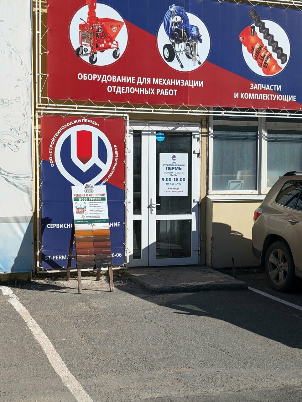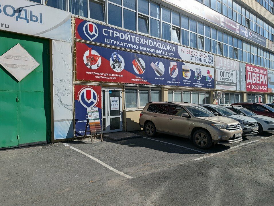 Стройтехнолоджи — строительный магазин в Перми, расположенный по адресу: ул. Героев Хасана, 105, корп. 70. Предлагает широкий ассортимент строительных материалов, инструментов и товаров для ремонта, включая колеровку и аренду инструмента. Режим работы: пн-чт 09:00–18:00, пт 09:00–17:00. Контакты: +7 (342) 201-96-06, сайт: (http://www.st-perm.ru/).