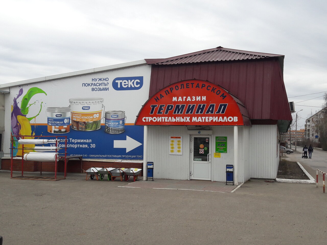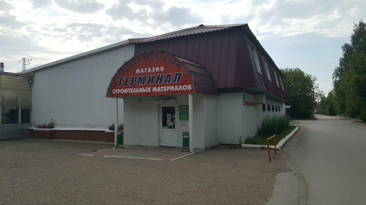 Строительный магазин «Терминал» находится в Перми по адресу: ул. Транспортная, 30. Ассортимент включает строительные материалы, инструменты и товары для ремонта. Режим работы: пн-пт 09:00–20:00, сб-вс 09:00–18:00. Контактный телефон: +7 (342) 213-60-03.