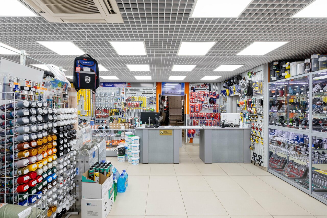 - Чистота в магазине; Большой выбор товаров; Адекватные и вежливые сотрудники; Помощь в подборе крепежа по цене и качеству; Подробная консультация по установке