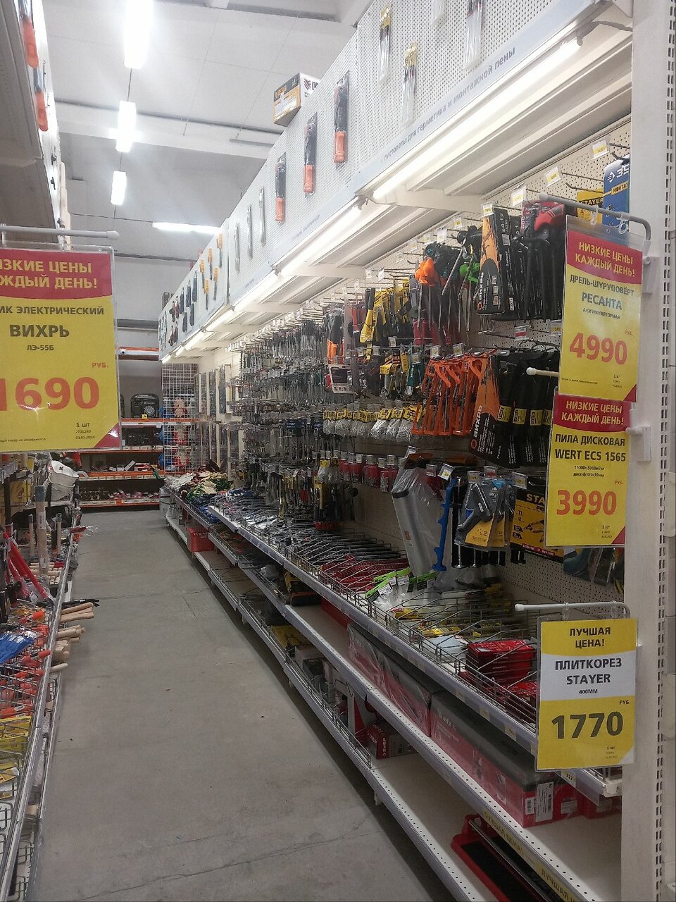 Основные товары по строительству все есть. Продавцы доброжелательные, готовы помочь с выбором. Из недостатков, это очень плохо работающая система активации карт лояльности.