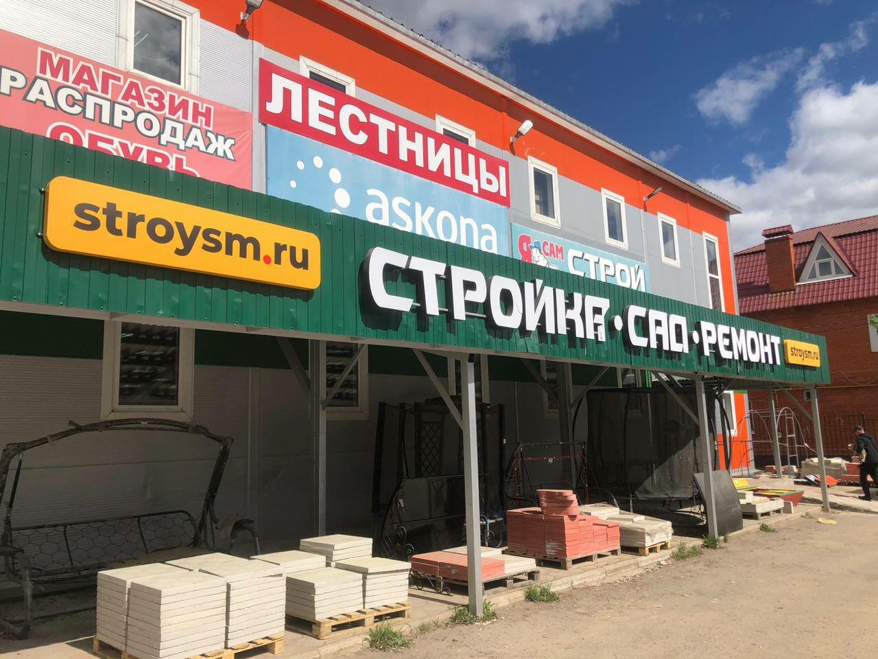 - Большой ассортимент (от стройматериалов до товаров для дома и дачи)