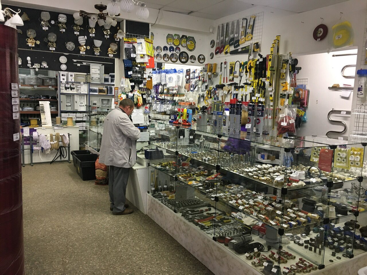 Большой ассортимент товаров( хоз. товары, электротовары, сантехнические, инструменты, строительные)
