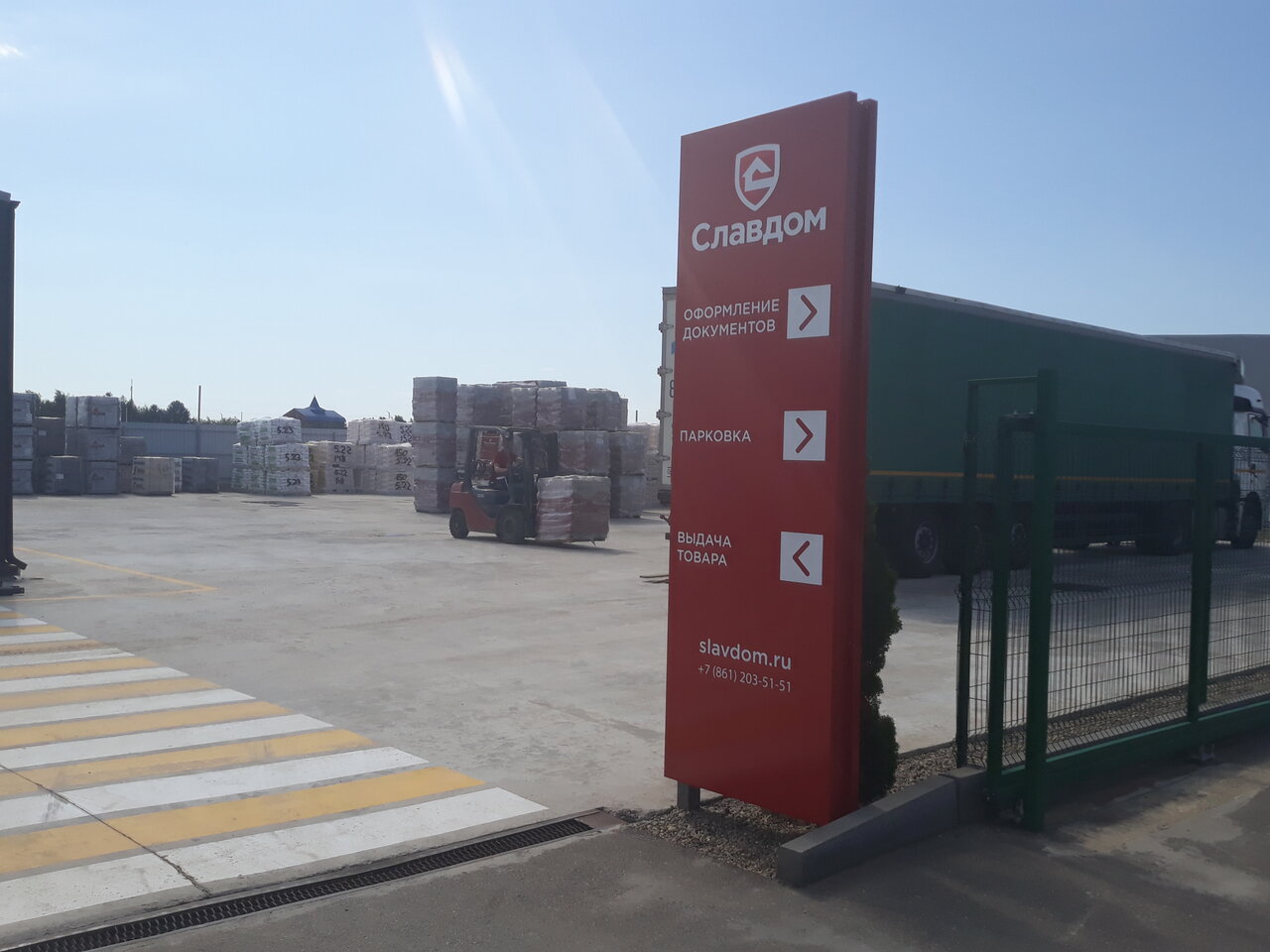 Удобный подъезд к складу. Чистота, порядок, быстрое оформление и получение товара.