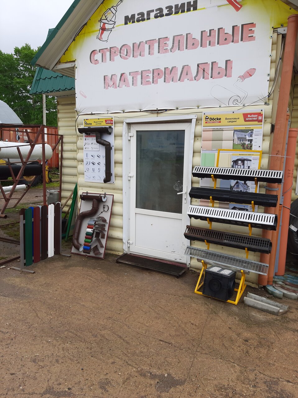 - Широкий выбор строительных материалов (ЖБ кольца, металл, пиломатериалы, канализационные трубы и колодцы).