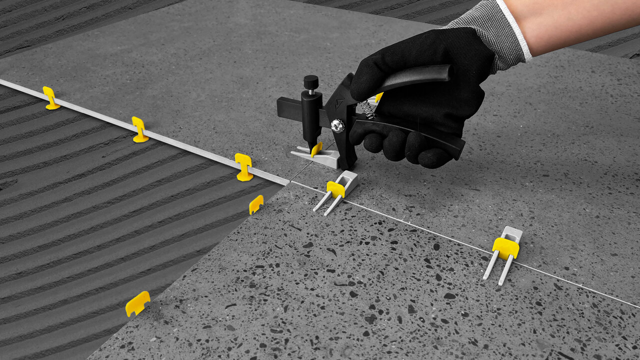 Набор M 1.4 мм система выравнивания плитки 'TLS-Profi' 1000 зажимов 1.4 мм + 300 клиньев + 1 инструмент