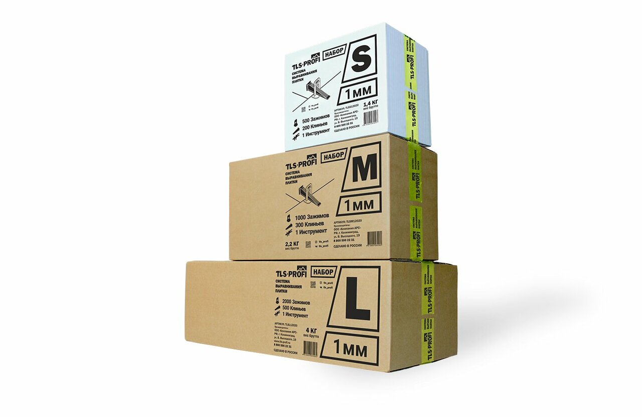 Набор M 1 мм система выравнивания плитки 'TLS-Profi' 1000 зажимов 1 мм+300 клиньев+1 инструмент