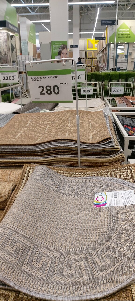 После того как магазин от французов перешёл к российской компании, он мне стал нравится больше. По крайне мере теперь не надо бегать и искать специалиста, чтобы проконсультироваться. Сейчас приходишь в магазин, в каждом отделе есть человечки с зелёных желетах, подходишь и спрашиваешь что тебе нужно. Меня удивляет, будь то парень или девушка, они ведут тебя до нужного места и помогают подобрать необходимый товар. В последний раз девушка, оставила свои дела, пошла со мной, помогла выбрать шланги для смесителя Grohe, к ним подобрать переходники-втулки и прокладки…