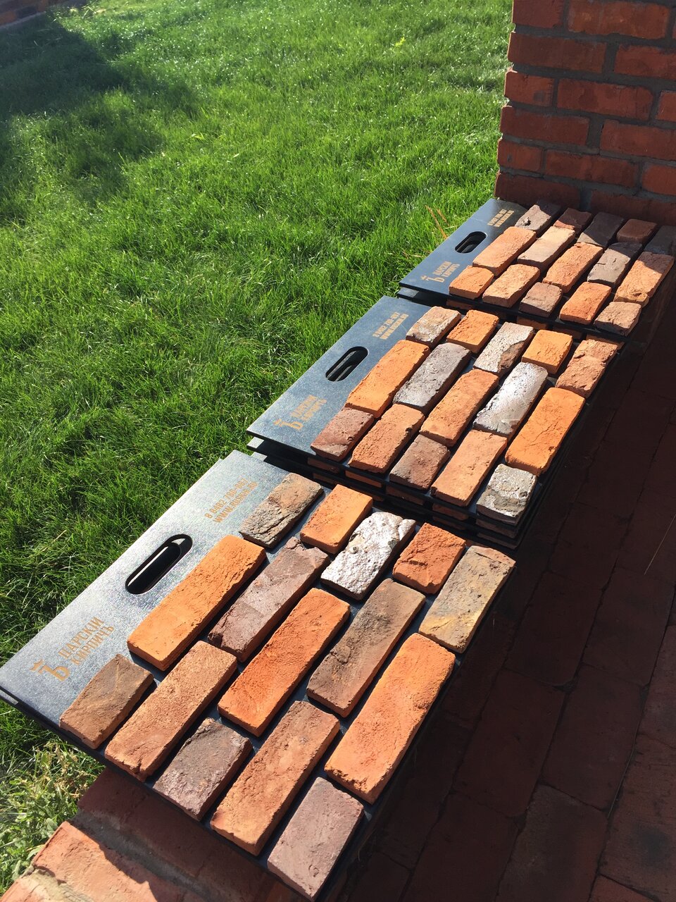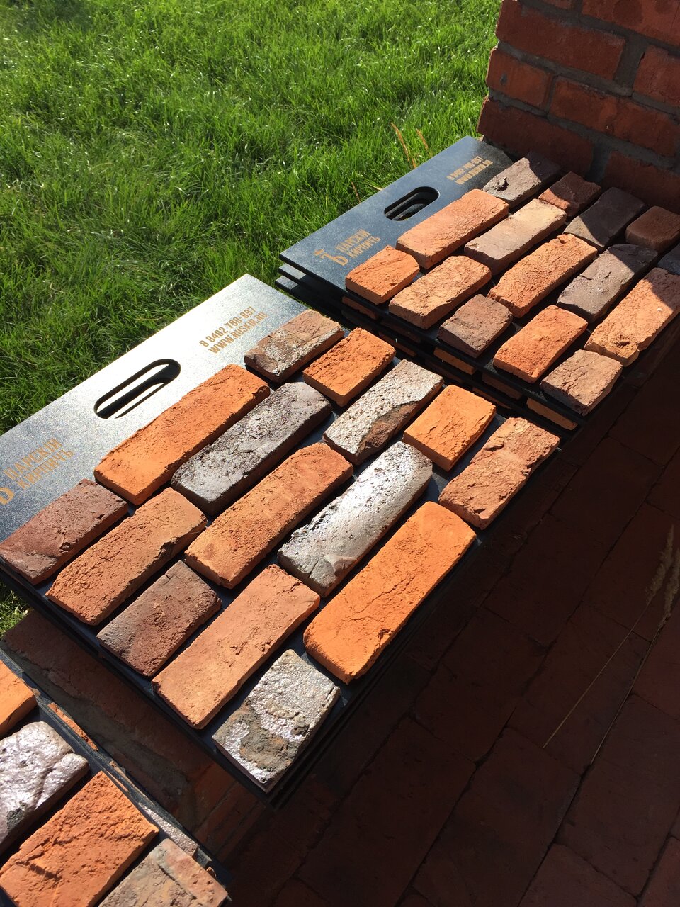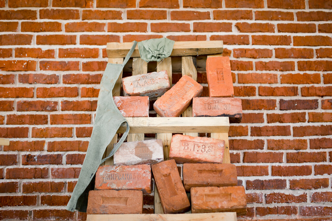 - Широкий ассортимент кирпича (разные цвета, фактуры, клейма)