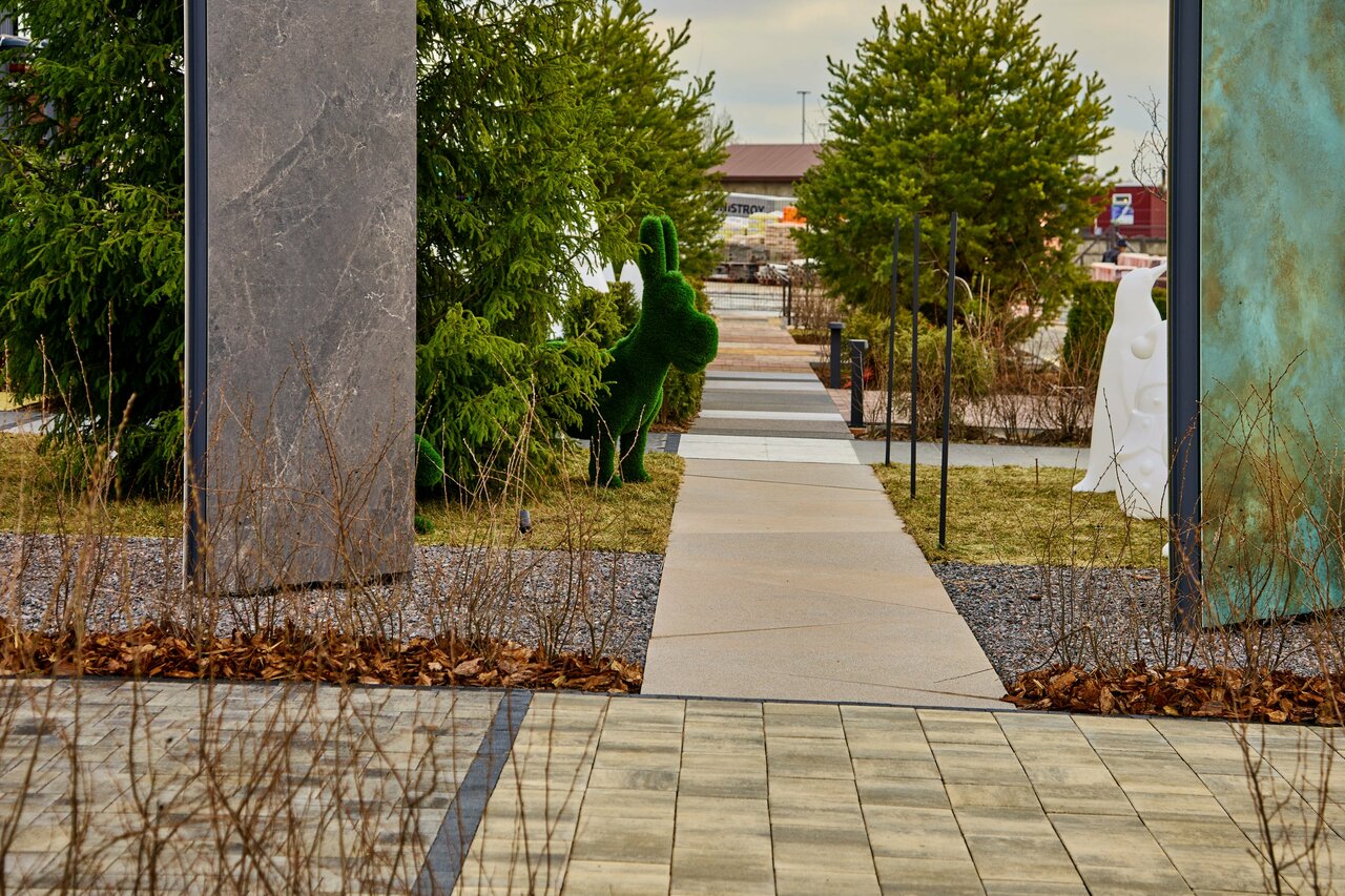 - Широкая выставка материалов мощения (брусчатка, камень)