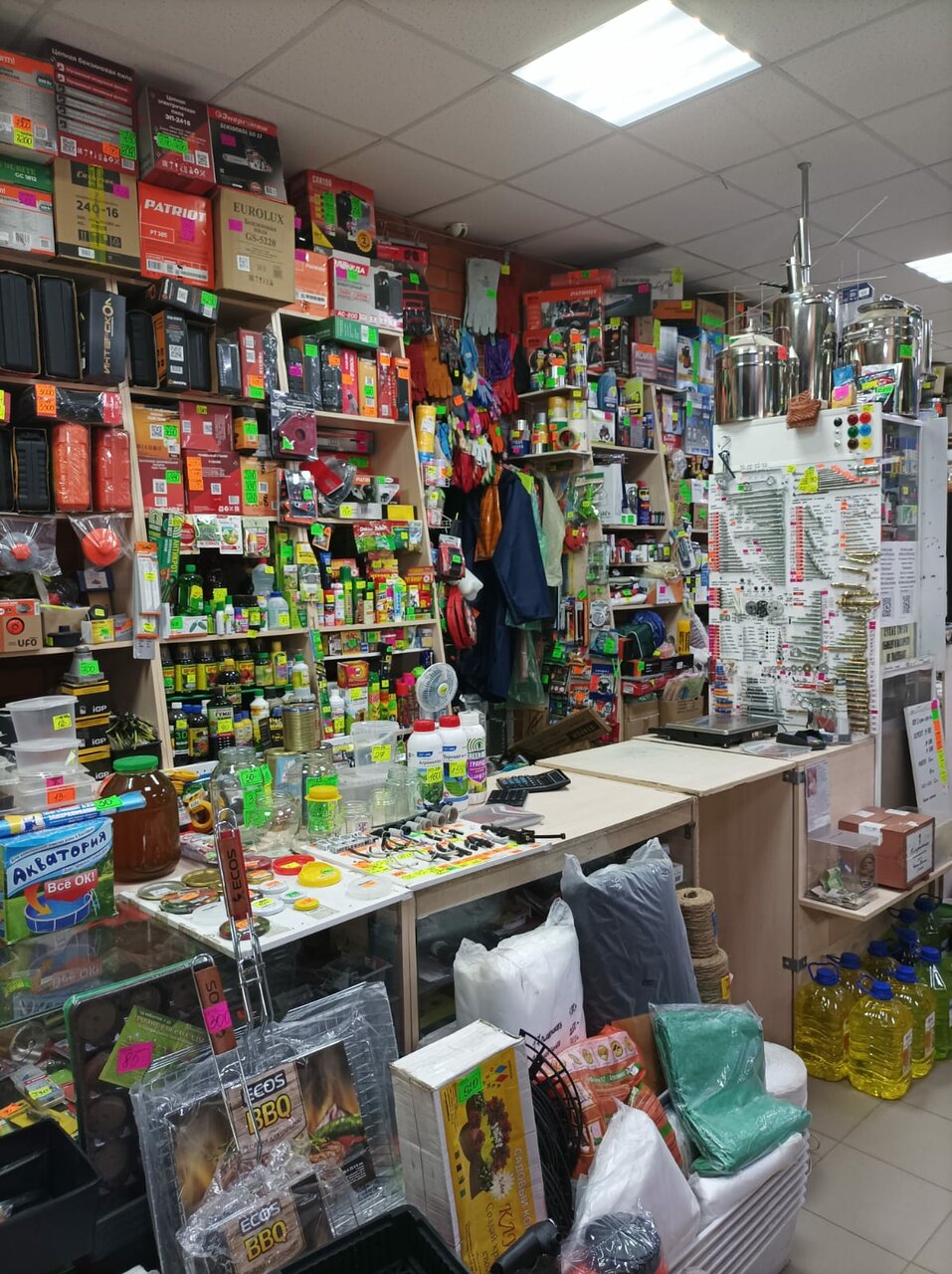 - Большой ассортимент товаров (хозтовары, стройматериалы, инструменты)