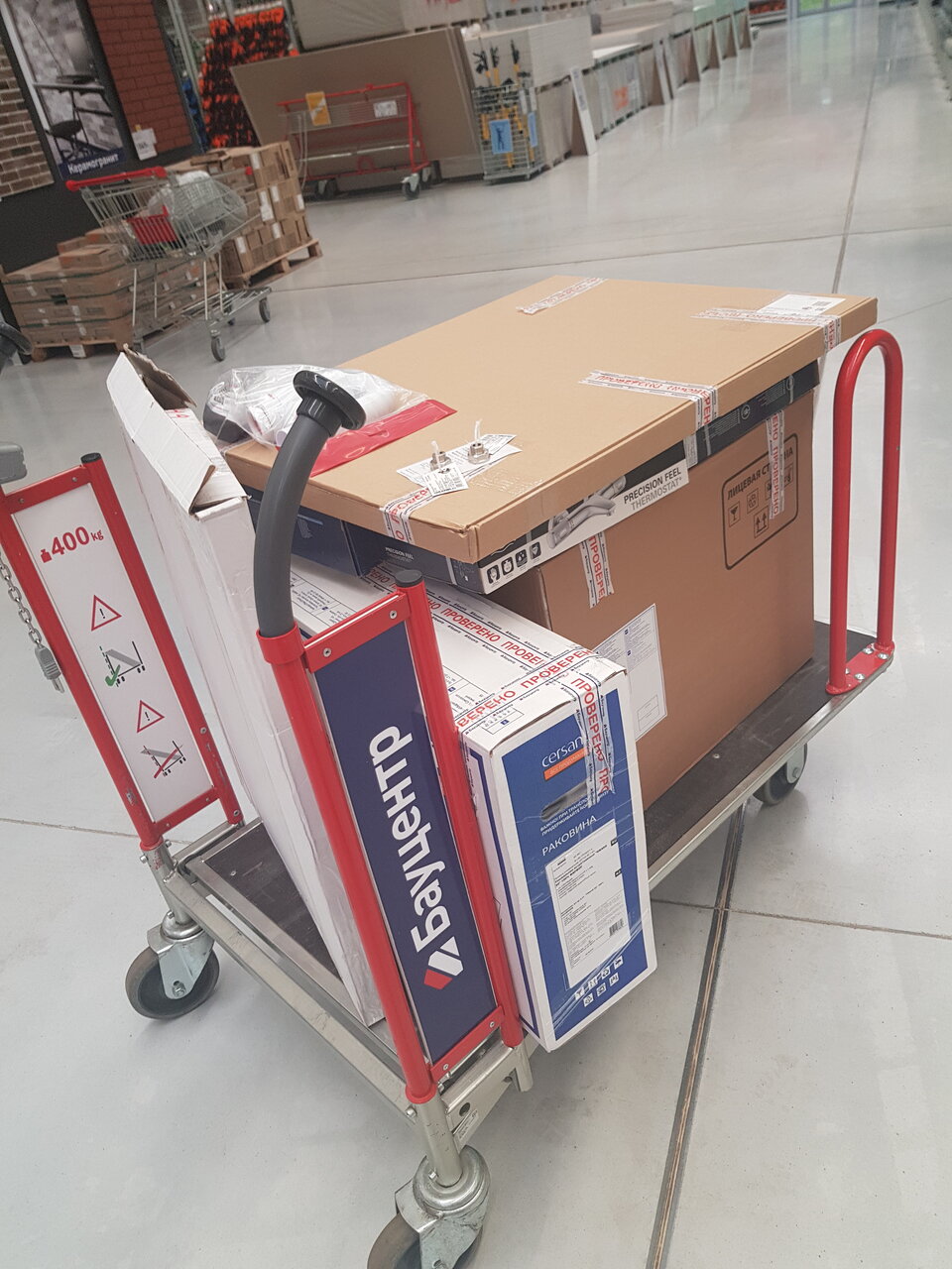 Большой магазин. Огромный выбор всего для стройки и ремонта. К сожалению в компазиции товаров нет всего, что есть на сайте. Это касается мебели для кухни и ванной. Приехали, чтобы в живую посмотреть понравившуюся мебель, но не смогли, образцов не было. Может это по тому, что как раз шло оформление композиции, и не все еще было закончено. Так же не очень хорошая навигация. Таблички с названием товаров есть, но висят высоко и на большом расстоянии плохо читаемы. Но в целом магазин хороший.