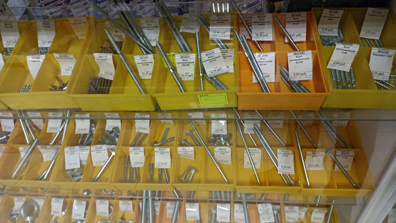 Универсальный магазин.гвозди,шурупы, строительные смеси,сантехника инструмент…и это совсем не весь выбор предоставляемый этим магазином.Еще бы в воскресенье работали- цены бы им не было ))