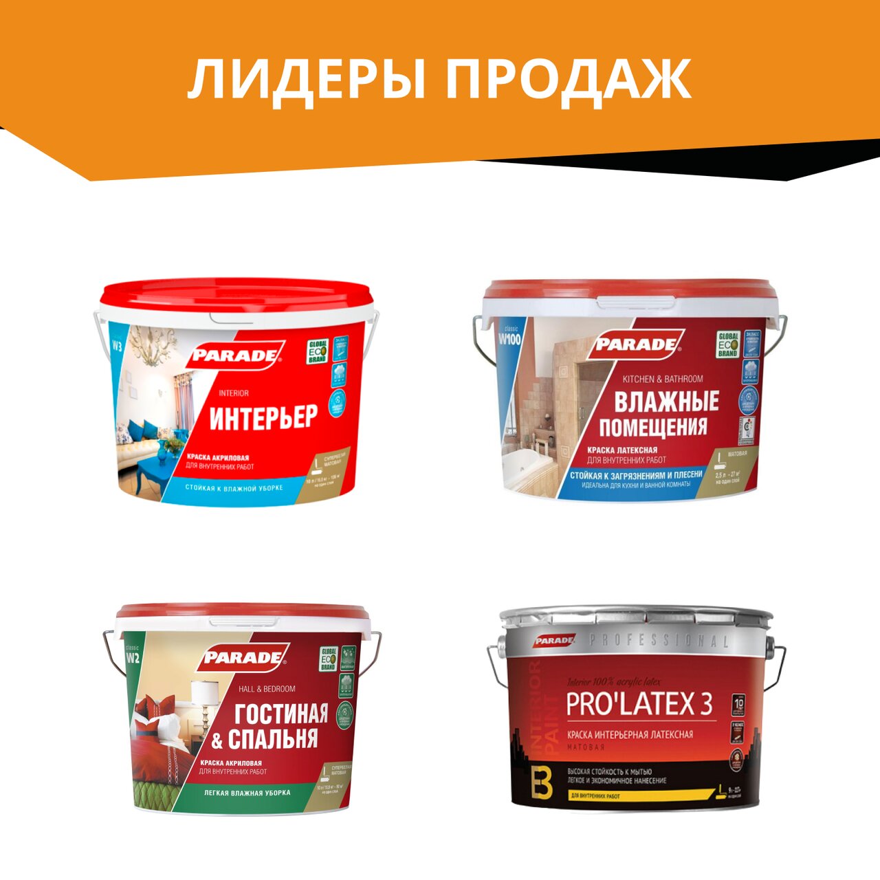 Краска интерьерная Parade E1 Super White для потолка база А 2,7 л