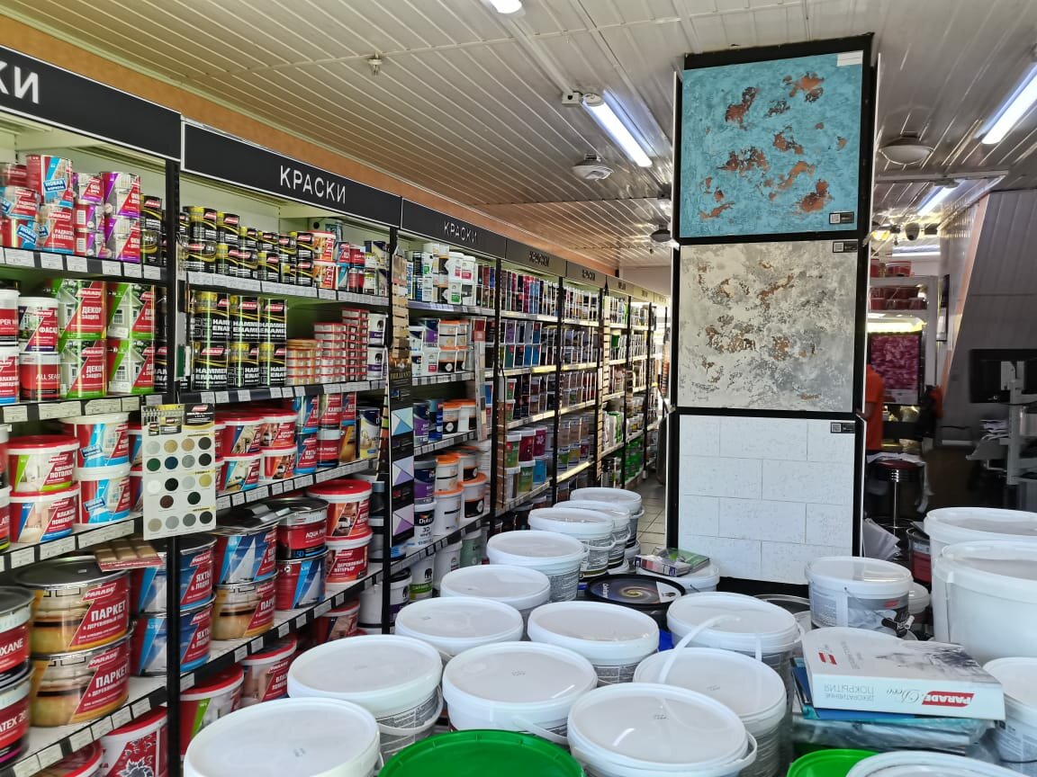 Покупали тут краску с декором,ассортимент норм,продавец все рассказал даже мастер класс провел,еще и скидку сделал.