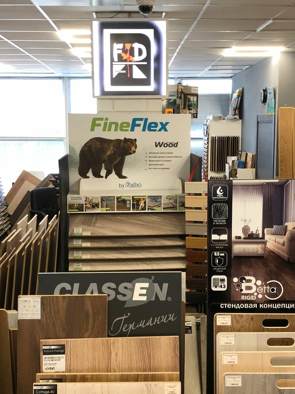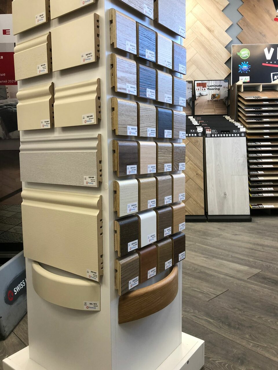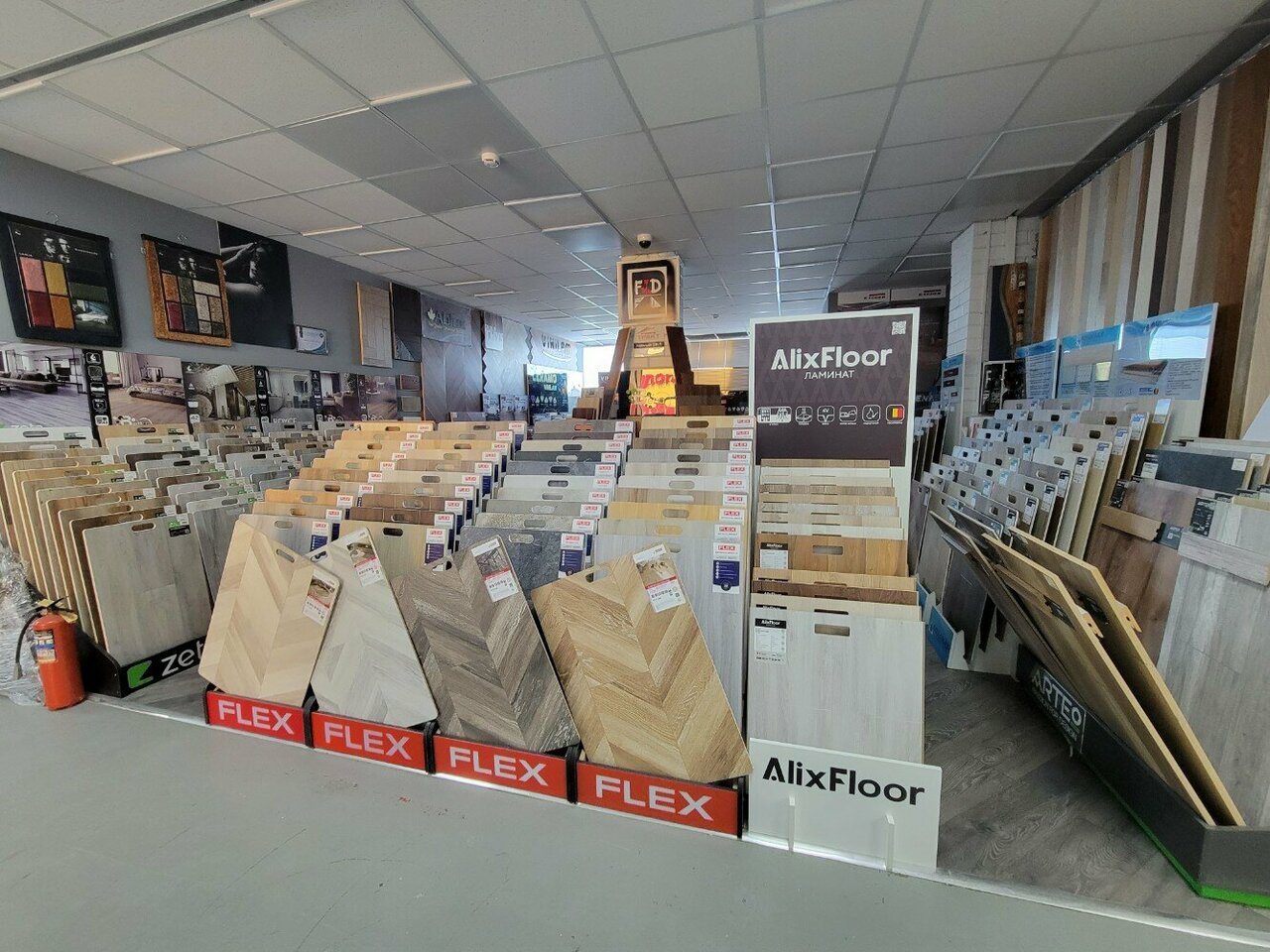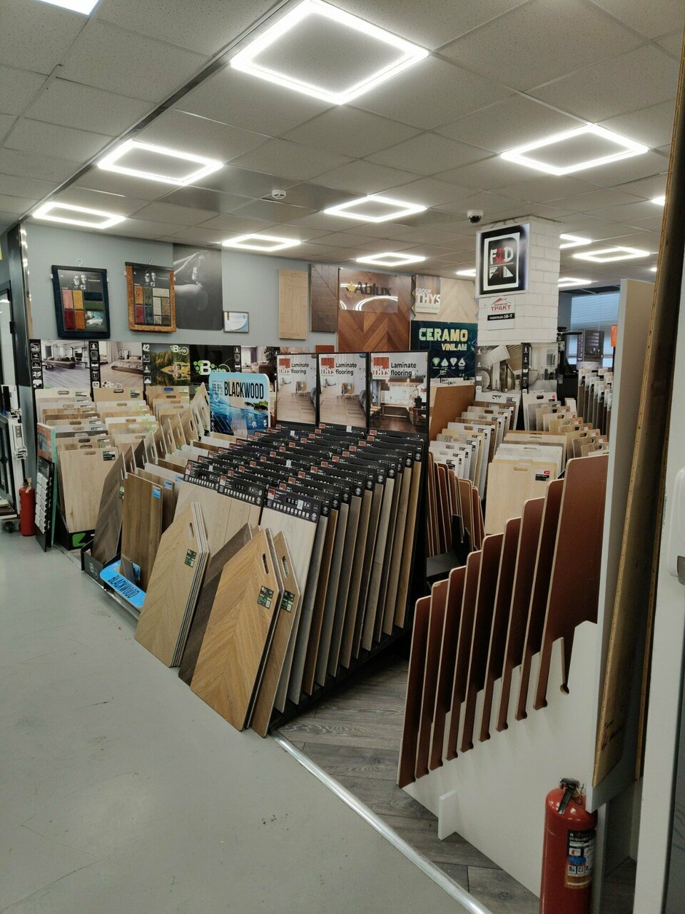 - Большой ассортимент напольных покрытий