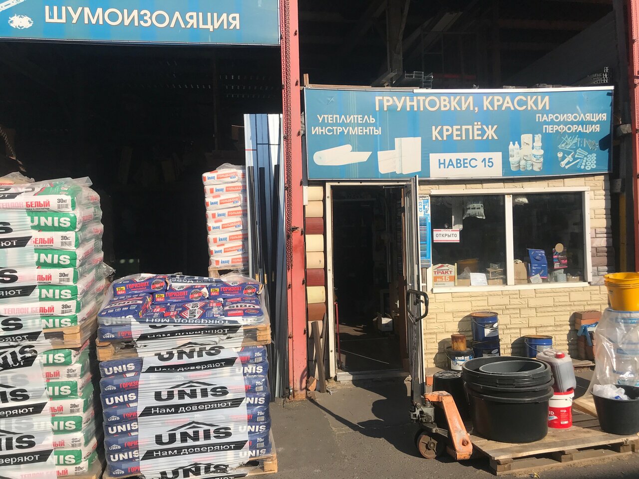 Здесь нашли то, что нам было нужно!! ( от смесей и инструмента для начала строительства до внутренних работ) Грамотные продавцы, подобрали все качественные материалы. А цены (что очень важно!!!!) приятно удивили. Нам неоднократно организовывали доставку в нужное время. Большое спасибо (навес 15) . ремонт еще не окончен, ждите нас снова.) Будем рекомендовать вас знакомым.