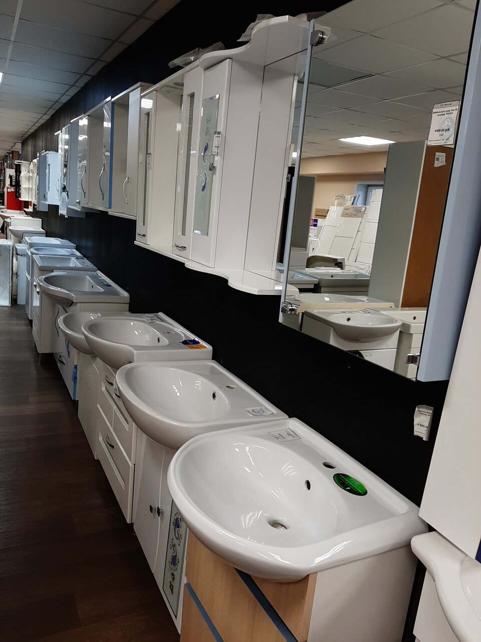 Магазин большой. Продавцы хорошие. Огромный выбор ленолиума в наличии. Кафельная плитка так себе, в наличии нет и на заказ нет. Большой выбор ванных комнат, унитазов.