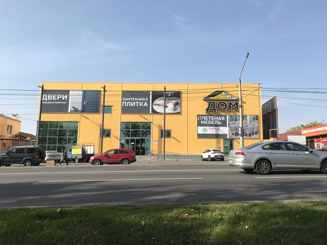ТЦ «Дом» – строительный магазин в Ростове-на-Дону, предлагающий широкий ассортимент дверей: стальные, раздвижные, деревянные, стеклянные, межкомнатные, входные, пластиковые и металлические. Расположен по адресу: ул. Вавилова, 63А.