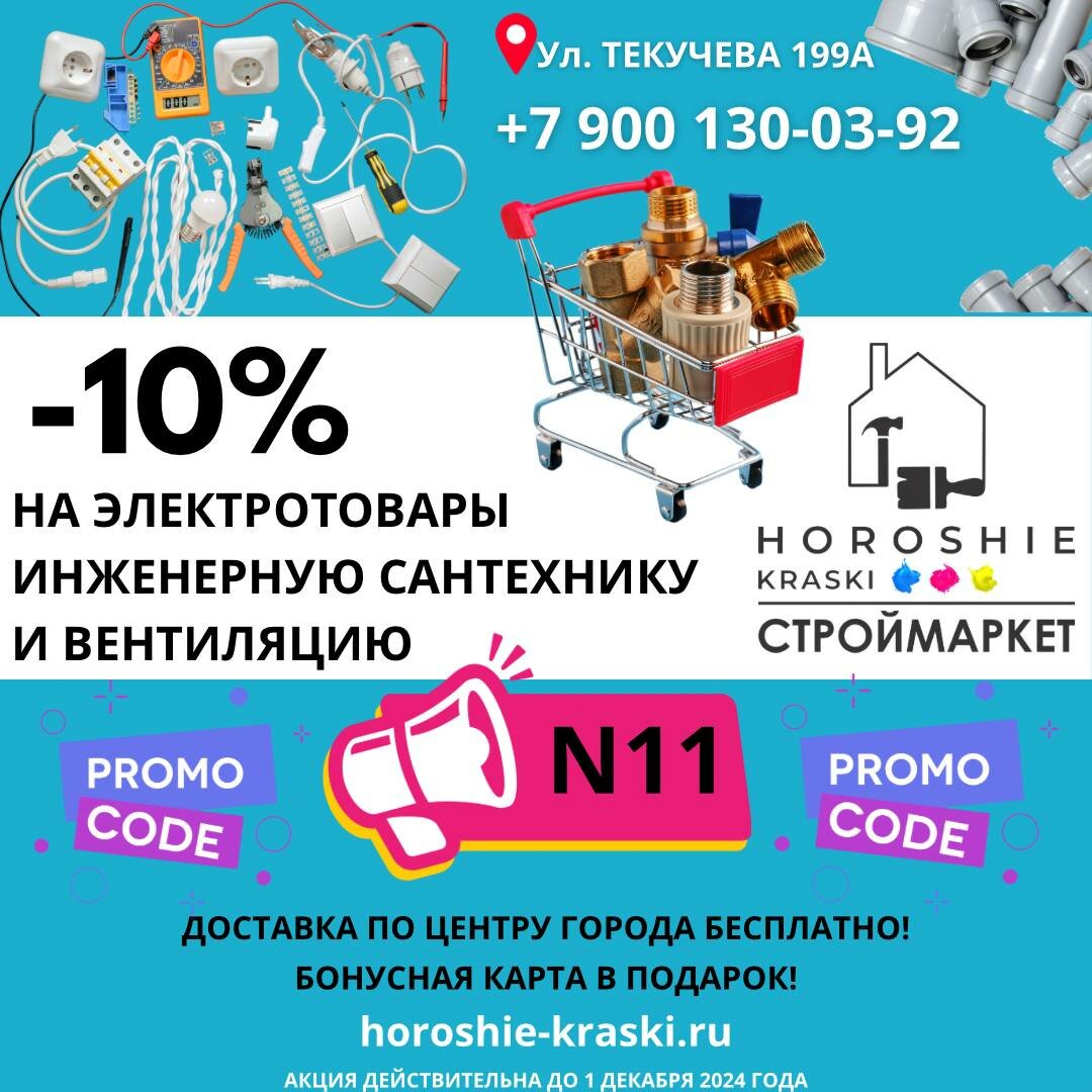 Адрес: ул. Текучёва, 199А Режим работы: Пн–Пт: 08:00–19:00 Сб–Вс: 09:00–17:00 Телефон: 8 (800) 500-25-93 Сайт: (https://horoshie-kraski.ru/)
