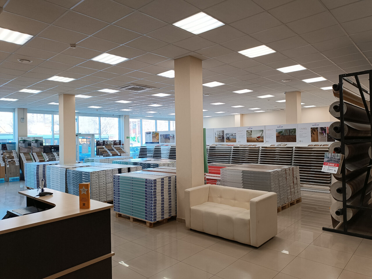 Отличное место — большой выбор линолеумов, грамотные консультанты. Все подробно расскажут, продемонстрируют в разных вариантах и помогут абсолютно со всем