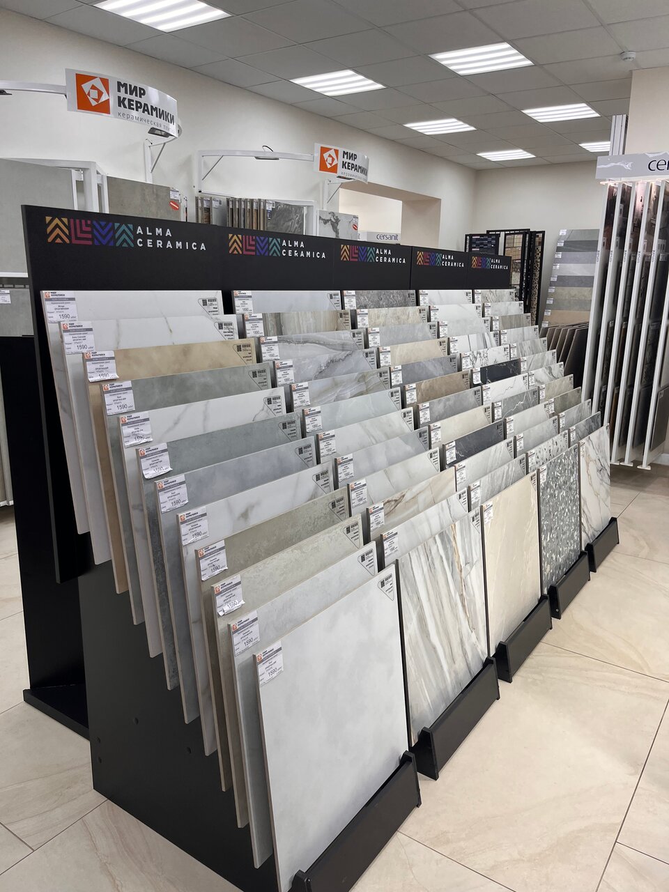 - Большой ассортимент плитки и керамогранита