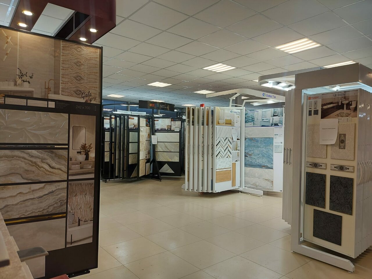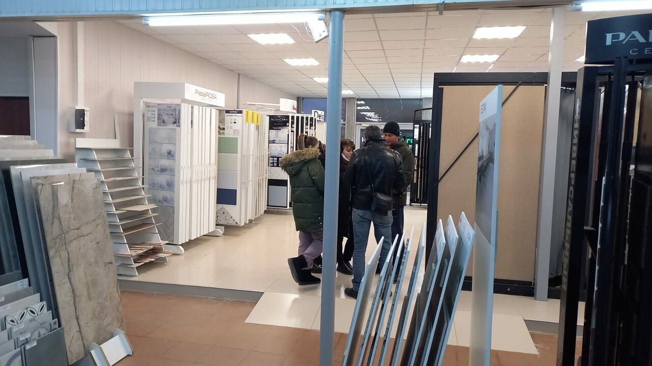 Выбор плитки хороший, но обслуживание нулевое, менеджер будет заниматься чем угодно — отправлять доставку, руководить заменой стендов,принимать звонки, но не обслуживать клиентов в зале. на все про все один человек, очереди собираются не шуточные — 4 человека для магазина плитки это много.