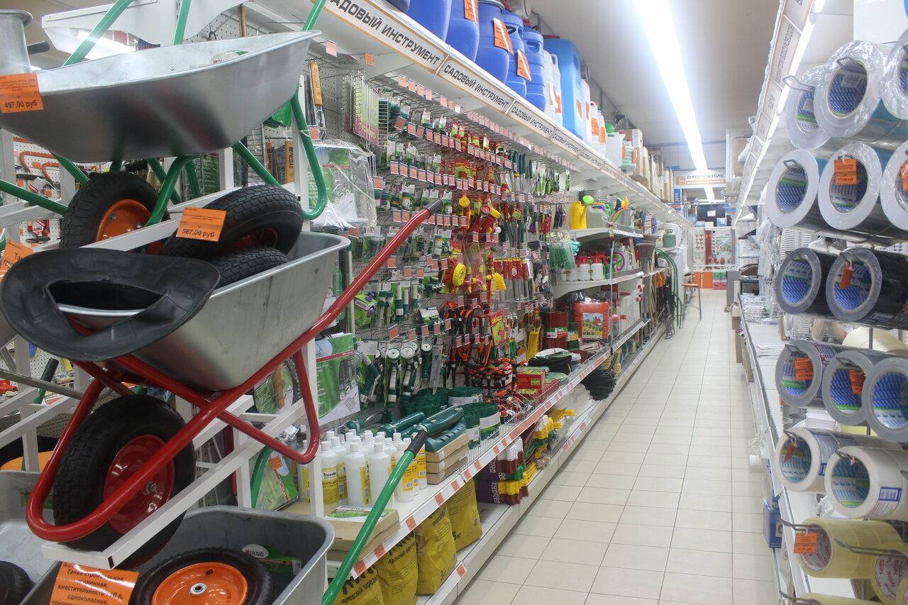 Хороший ассортимент, все для ремонта и строительства, нужные в хозяйстве товары! Недавно в очереди стоял на кассу мужик покупал верёвку и мыло, больше его не видел.