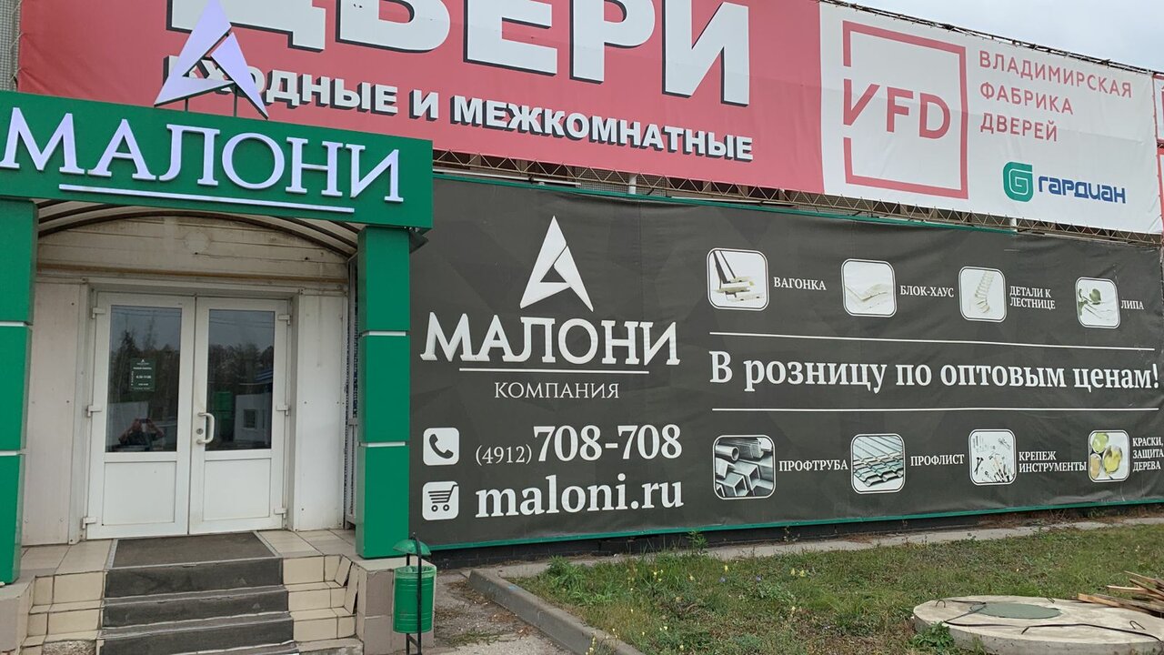 Малони — строительный магазин в Рязани, предлагающий материалы для строительства, ремонта и отделки. Основные категории товаров: лиственница и ЦСП.