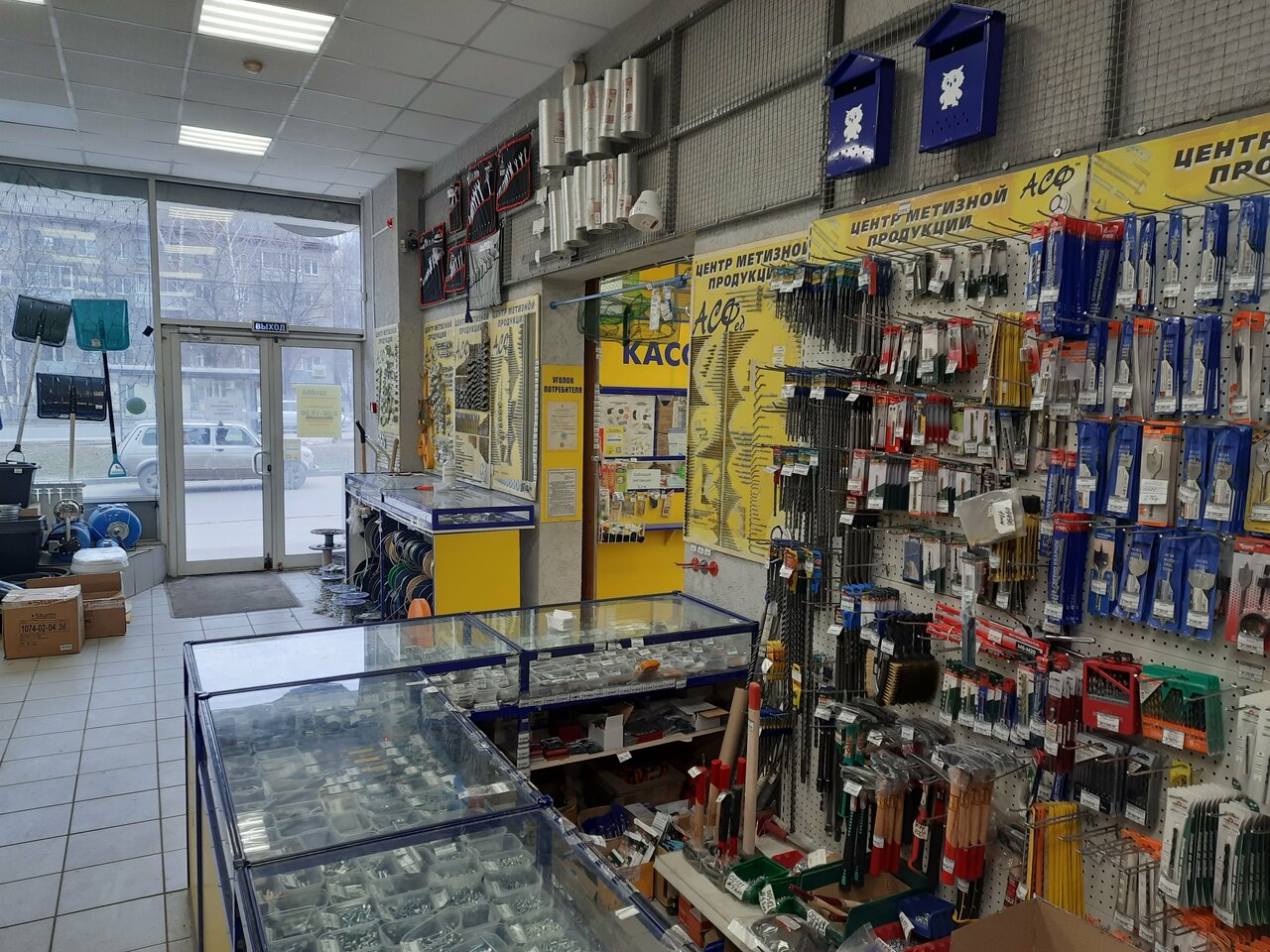 - Большой ассортимент (болты, саморезы, канаты, сверла, электрика, сантехника, рыболовные товары)