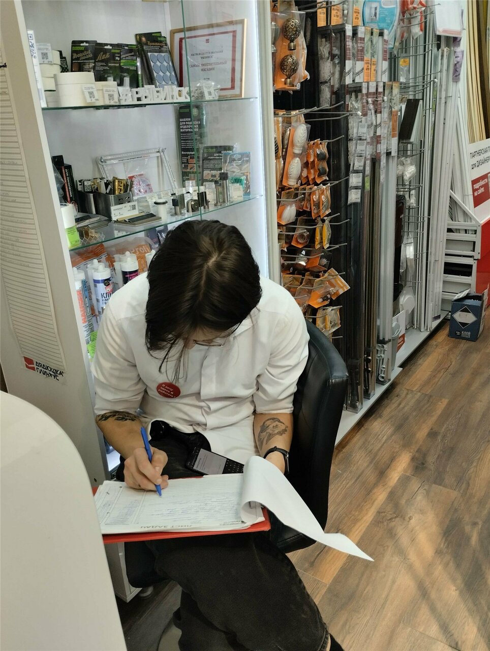Отличный магазин. Никита (продавец) настолько хорошо знает товар, что мы даже изменили стиль и материал напольного! Долго выбирали плинтуса, а в итоге сделали интереснее и дешевле чем планировали. Супер магазин, рекомендую! 4 звезды только за маленькие проходы.