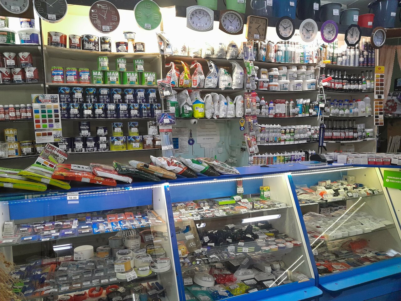 Маленький но полезный магазин есть всякая мелоч и крупные бытовые материалы