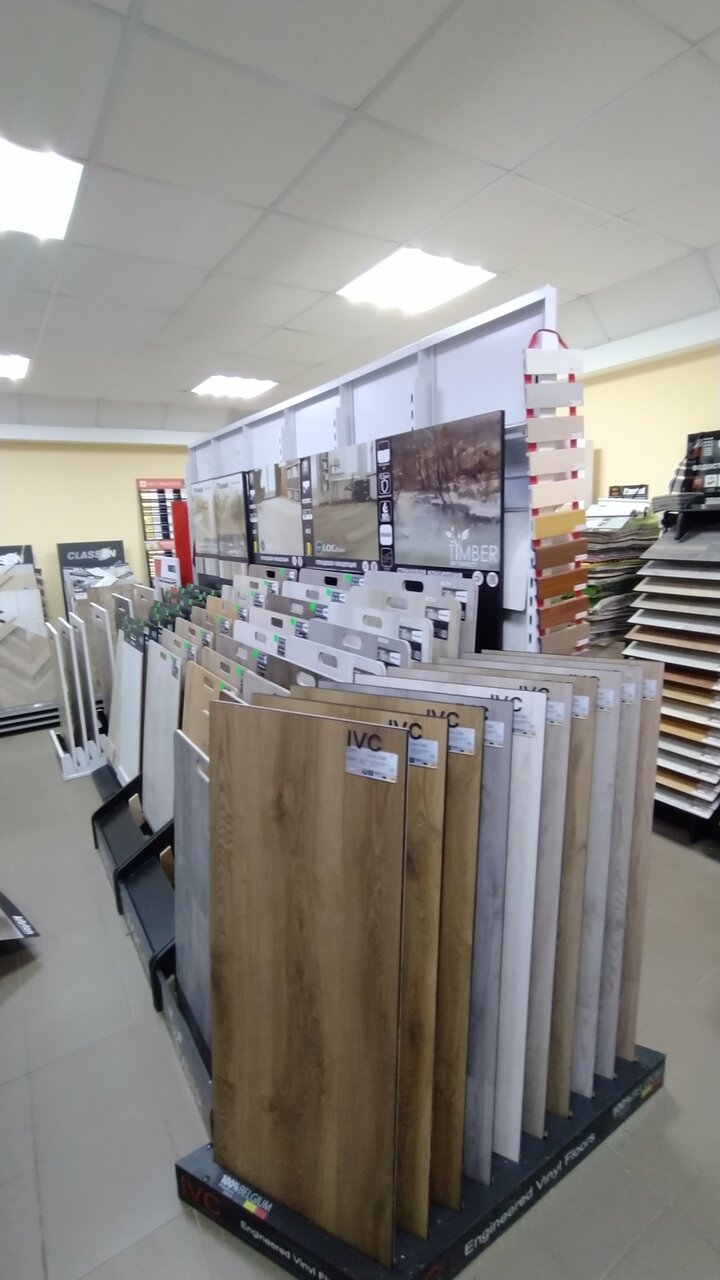 Отличный магазин! Хороший выбор напольных покрытий. Помогли подобрать плитку ПВХ, а когда мы обнаружили, что пол не достаточно ровный для неё, поменяли на ламинат.