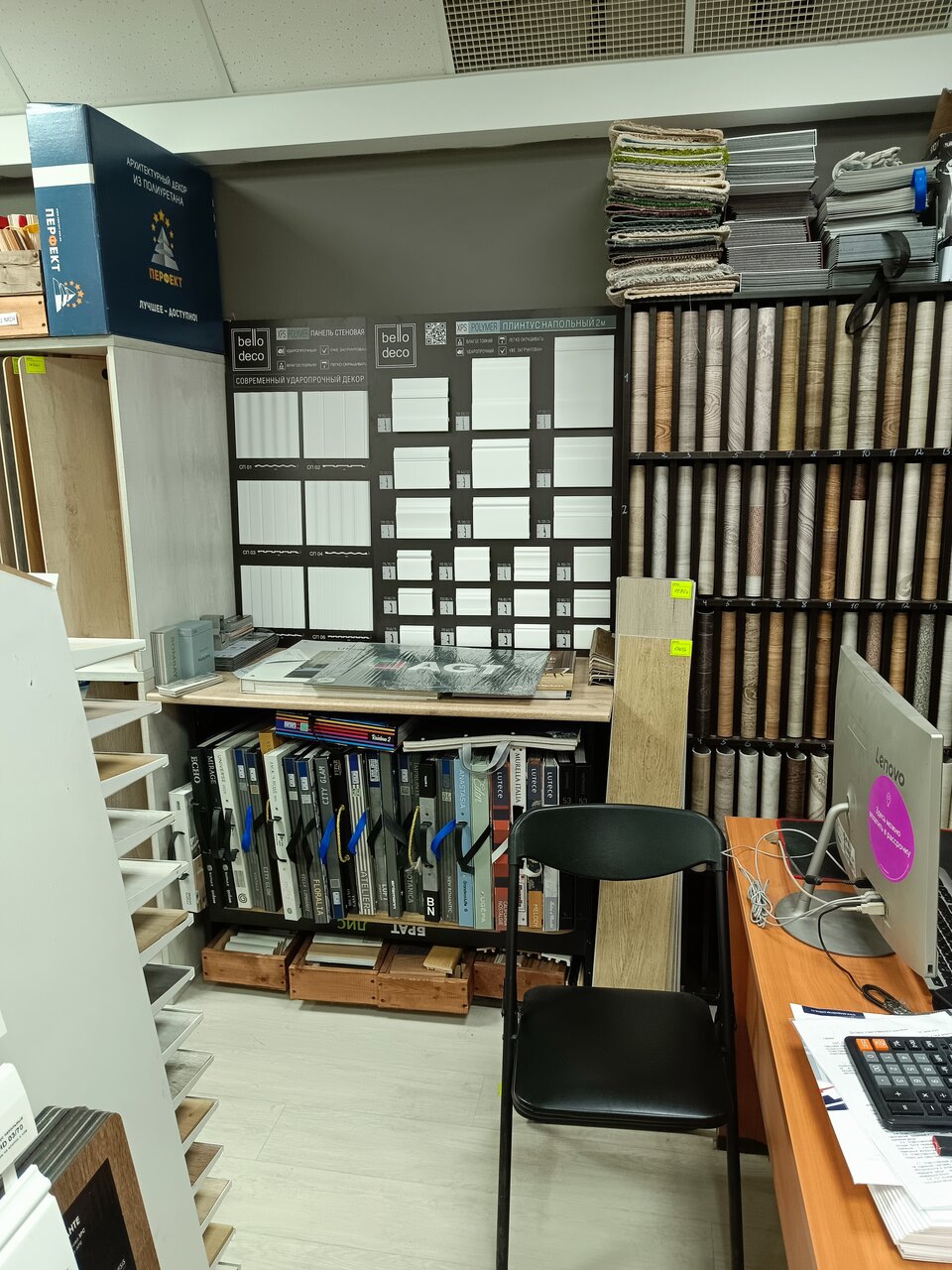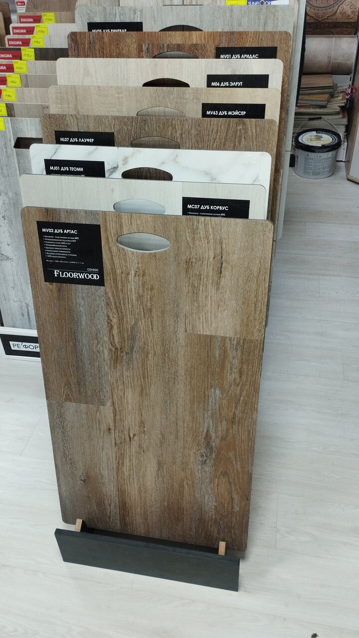 - Большой ассортимент (ламинат, линолеум, декор и др.)