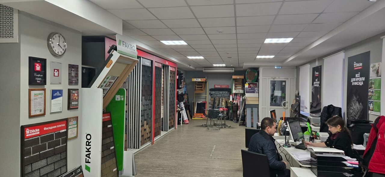 - Вежливый и адекватный персонал; Отличный выбор кровельных и фасадных материалов; Готовность помочь с поиском товара в других магазинах.; Доступная доставка; Удобное расположение