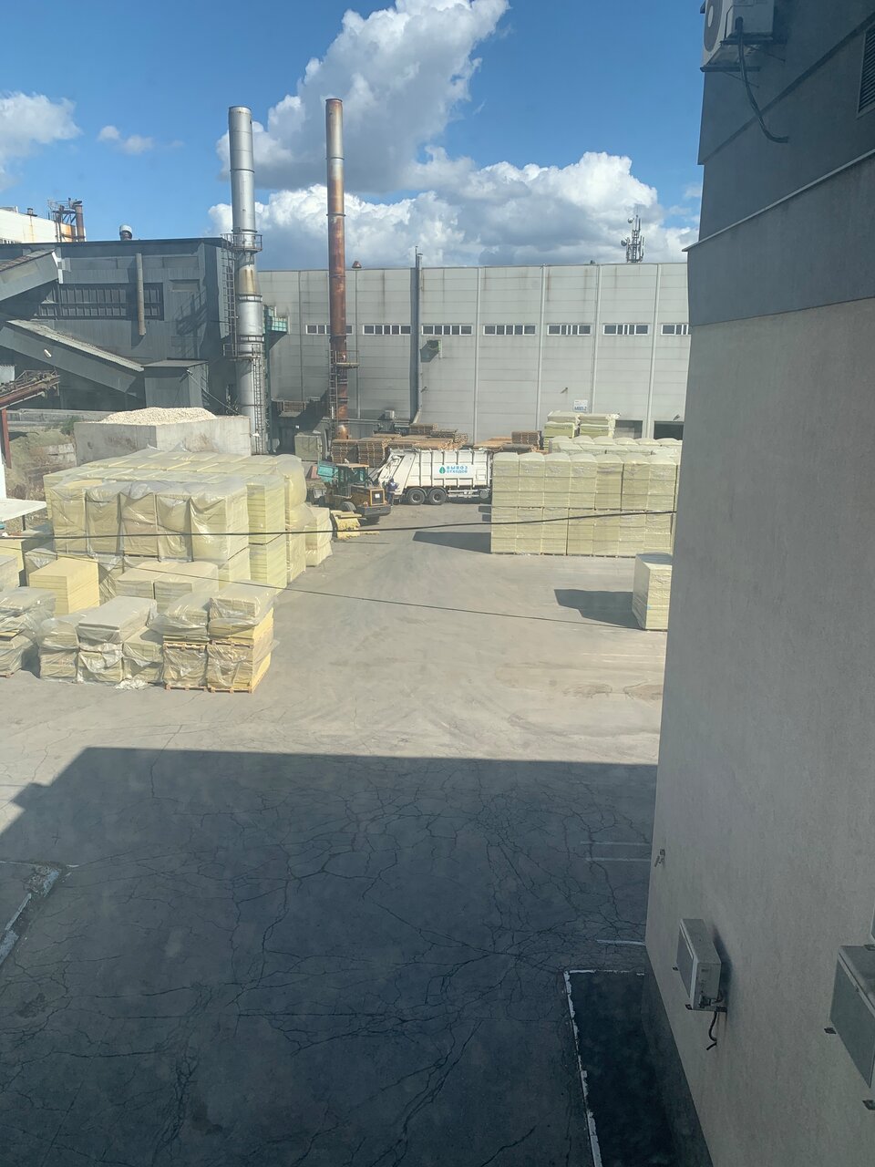Погрузка утеплителем, на территории бардак, черт ногу сломит, кучи мусора металлолома и прочего, перевозчики будьте аккуратнее, а владельцы производства минус, никому ничего не нужно