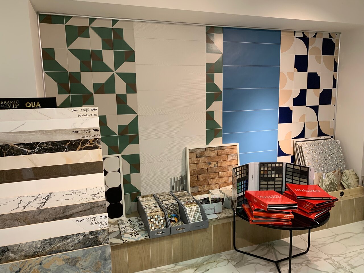 Профессиональные консультанты и приемлимые цены. Выставочный зал интересный, представлено много позиций. Многие позиции в наличии. Первый раз брал керамогранит на пол — все понравилось. Теперь взял на фартук кухни. Я доволен! Спасибо!