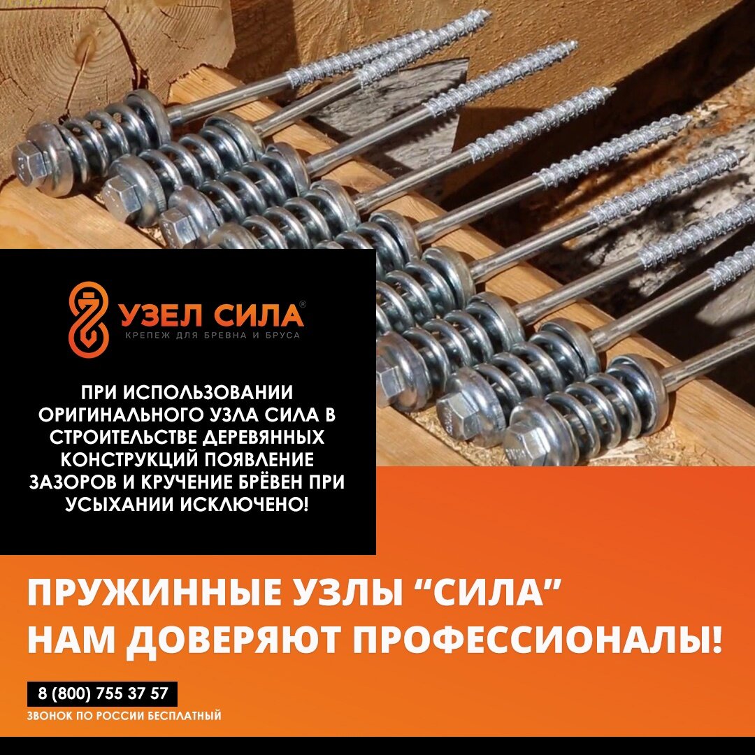 Отличная компания. Производят крепеж Пружинный УЗЕЛ СИЛА значительно снижающий риск появления межвенцовых зазоров при строительстве деревянных домов из бревна и бруса.