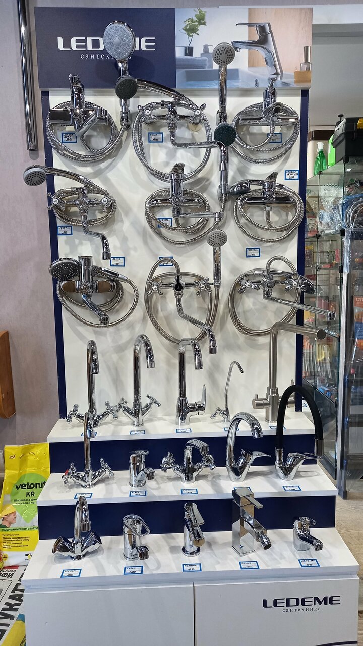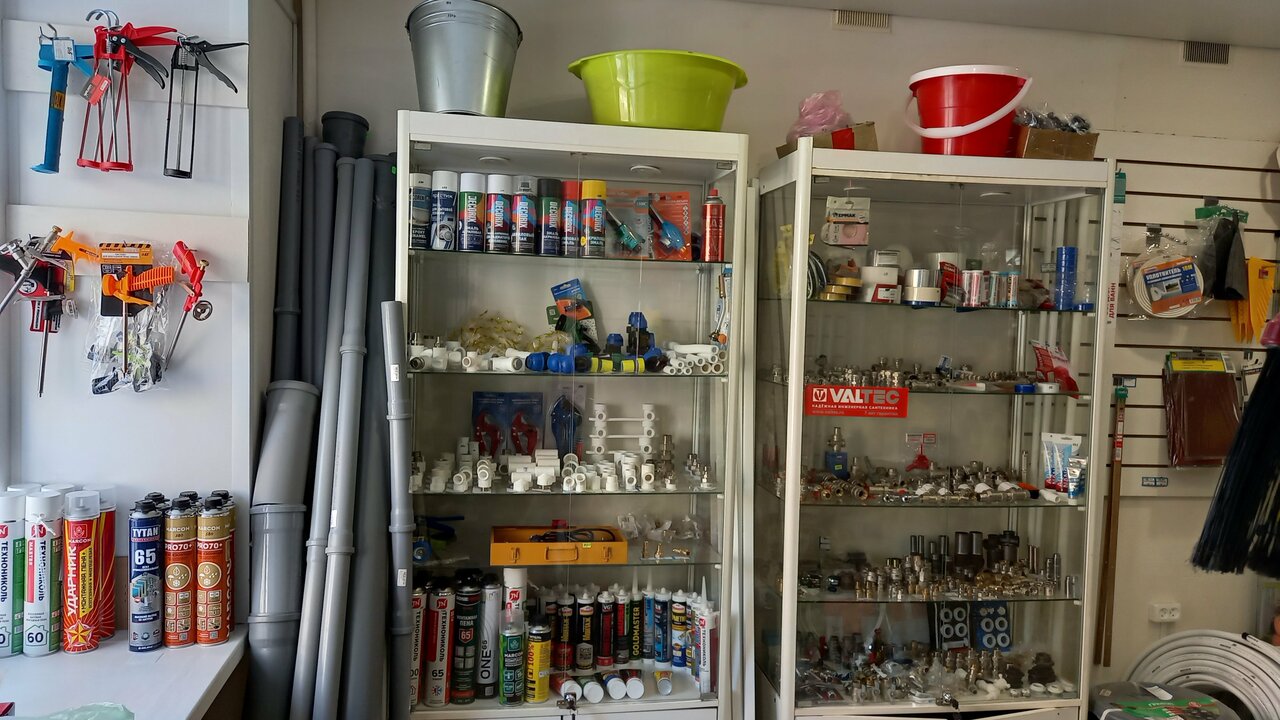 Маленький магазин, но довольно большой выбор. Водопроводные шланги, смесители, крепёж, герметики и т.п. Есть всё необходимое. Нашёл всё, что мне не было нужно.