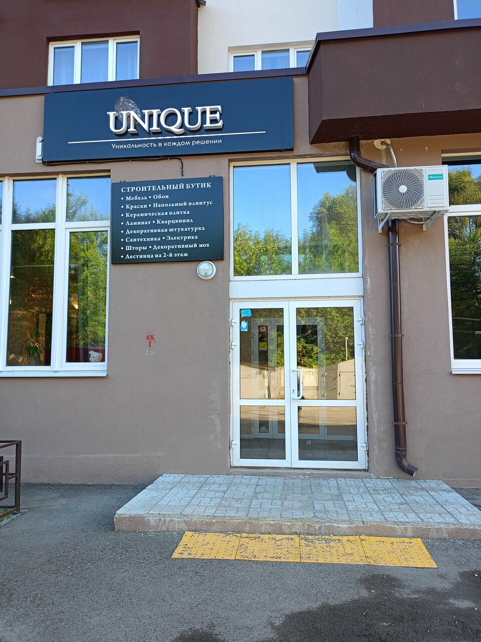 Юник — строительный магазин в Самаре, предлагающий широкий ассортимент материалов для ремонта и отделки. Расположен по адресу: проспект Карла Маркса, 246. В наличии: скрытый плинтус, лепнина из полиуретана, стеновые панели, напольные покрытия (ламинат, линолеум, кварц-винил, паркетная доска, ковролин), а также разнообразная плитка (керамогранит, кафель, мозаика, декор, панно и др.).