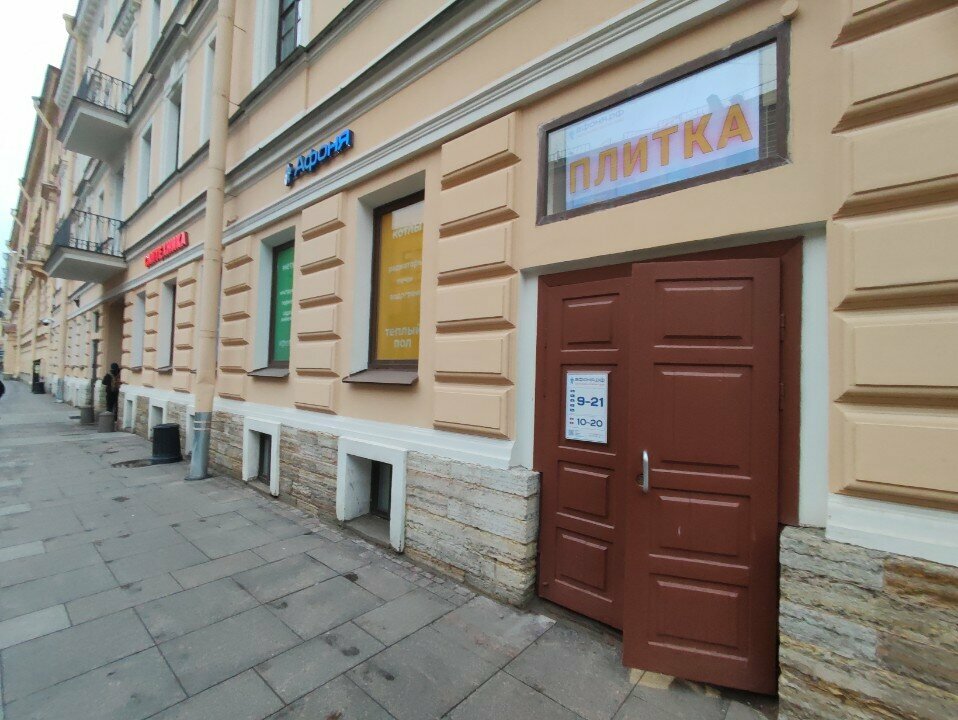 Афоня — строительный магазин в Санкт-Петербурге, предлагающий широкий ассортимент люков и инженерной сантехники. Расположен по адресу: Моховая ул., 42. Режим работы: пн-пт 09:00–21:00, сб-вс 10:00–20:00. Контакты: +7 (812) 648-22-11, +7 (812) 579-68-41, +7 (812) 719-73-17. Подробнее на сайте: (https://www.afonya-spb.ru/).