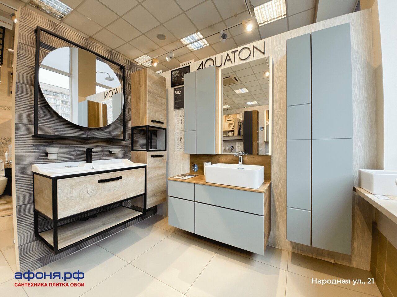 Афоня — строительный магазин в Санкт-Петербурге, предлагающий широкий ассортимент плитки для различных помещений (ванной, кухни, коридора, гостиной, туалета, бассейна, фартука), а также инженерную сантехнику. В наличии представлены настенная, напольная, мозаичная, декоративная и клинкерная плитка.