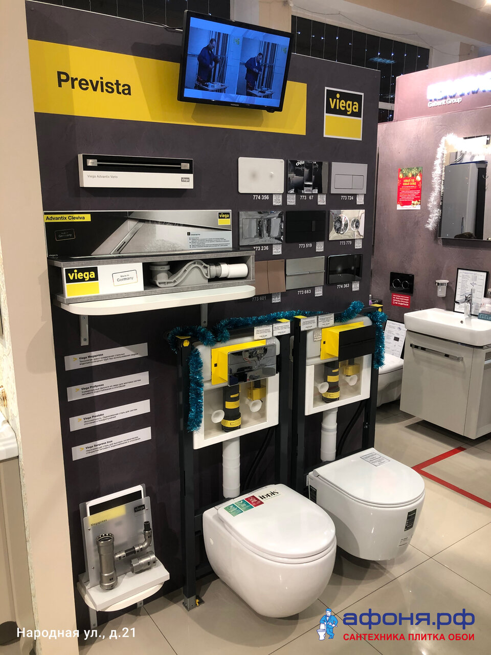 - Большой ассортимент товаров (инженерка, плитка, сантехника)