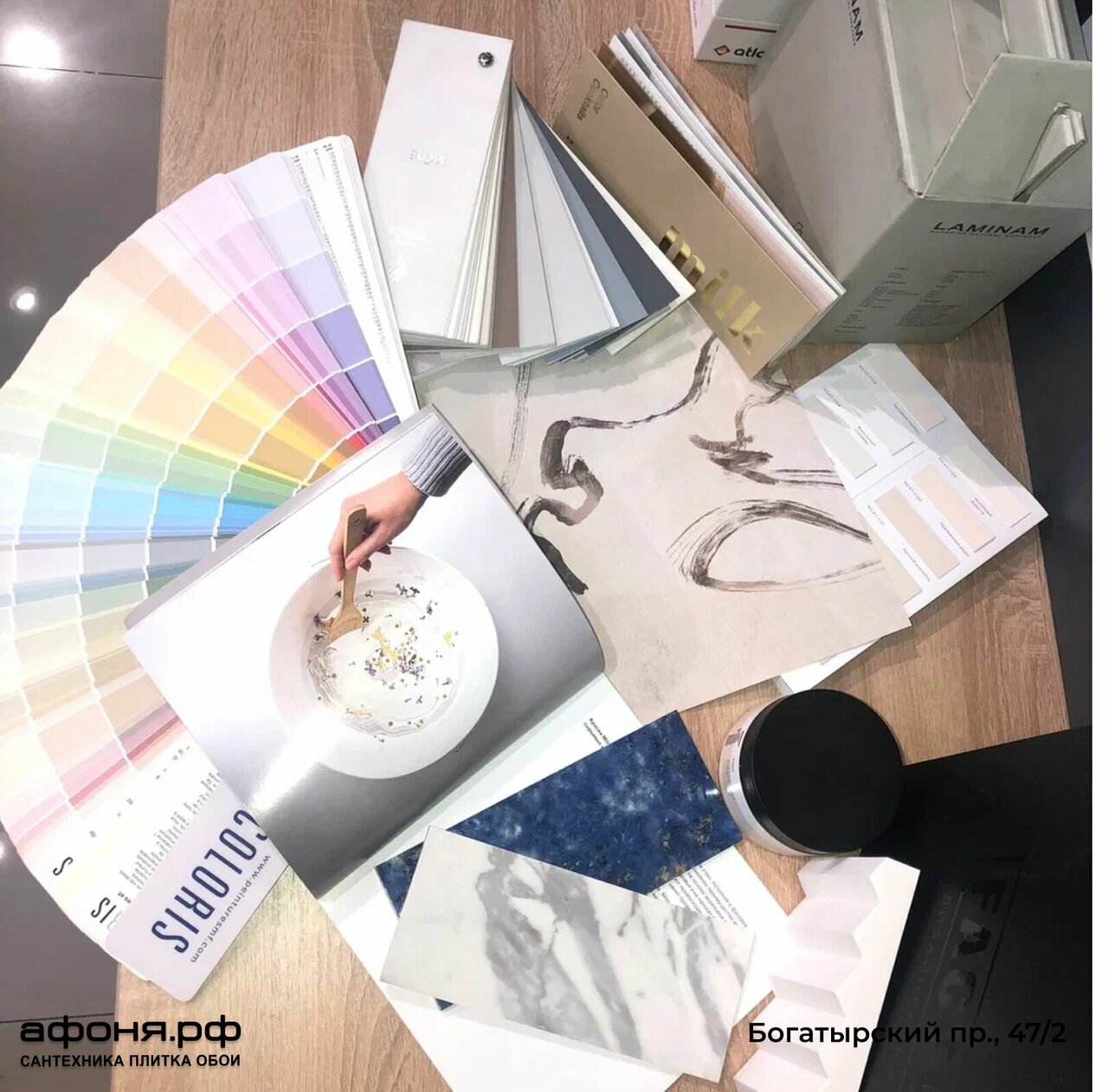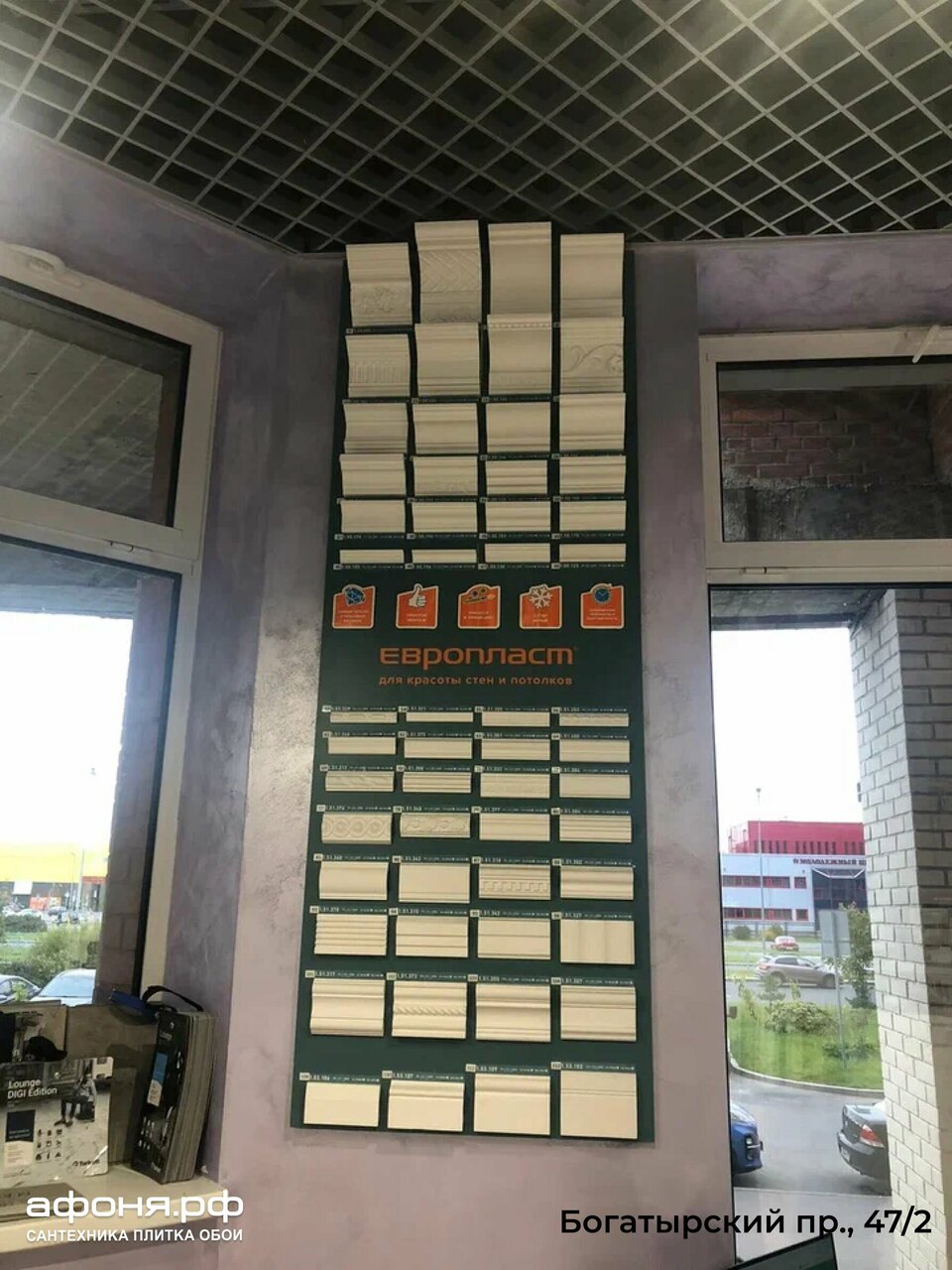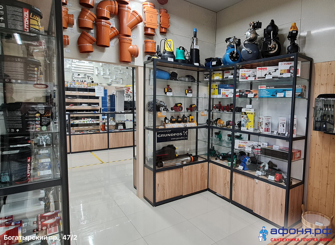 Адрес: Богатырский проспект, 47, корп. 2 Режим работы: Пн–Пт: 09:00–21:00 Сб–Вс: 10:00–20:00 Телефоны: +7 (812) 648-22-11 (основной) +7 (981) 878-40-75 (отдел плитки) +7 (911) 720-10-56 (инженерная сантехника) Сайт: (https://www.afonya-spb.ru/)