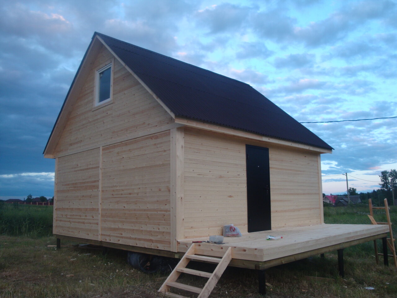 У мужа был собственный проект дачного дома, обошли с ним несколько компаний, здесь посчитали дешевле всего. Предоплата нужна была в 20%, домик с верандой,размером 3.3х6м, уже с внутренней и внешней отделкой, полностью под ключ, за сборку доплатили 15 тыс. Сделали все относительно быстро и качественно, за месяц построили и доделали домик полностью.