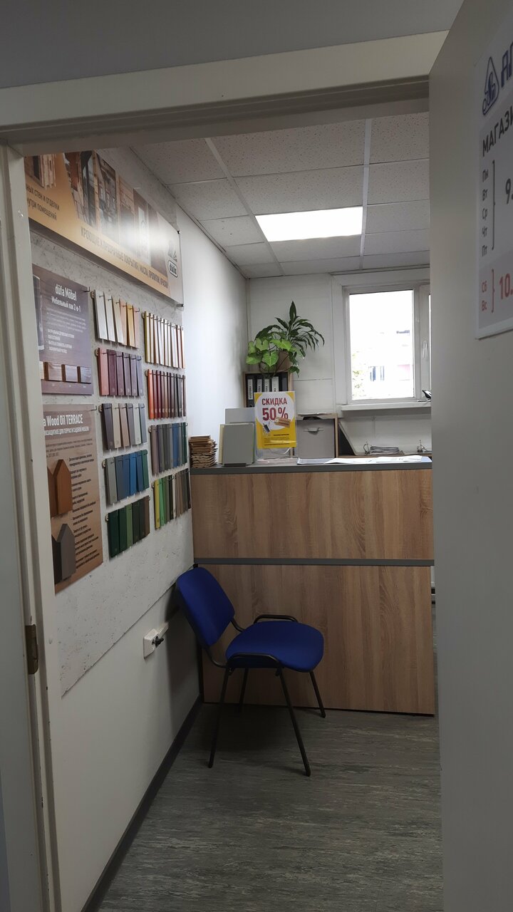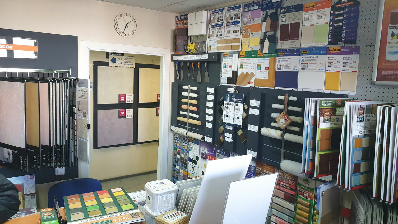 Огромный выбор красок,антисептиков,пропиток,лаков и вообще любой лакокрасочной продукции. Также есть и сопутствующие материалы и инструменты.Очень привлекательные розничные цены- есть свой сайт.Из минусов- неудобство расположения.