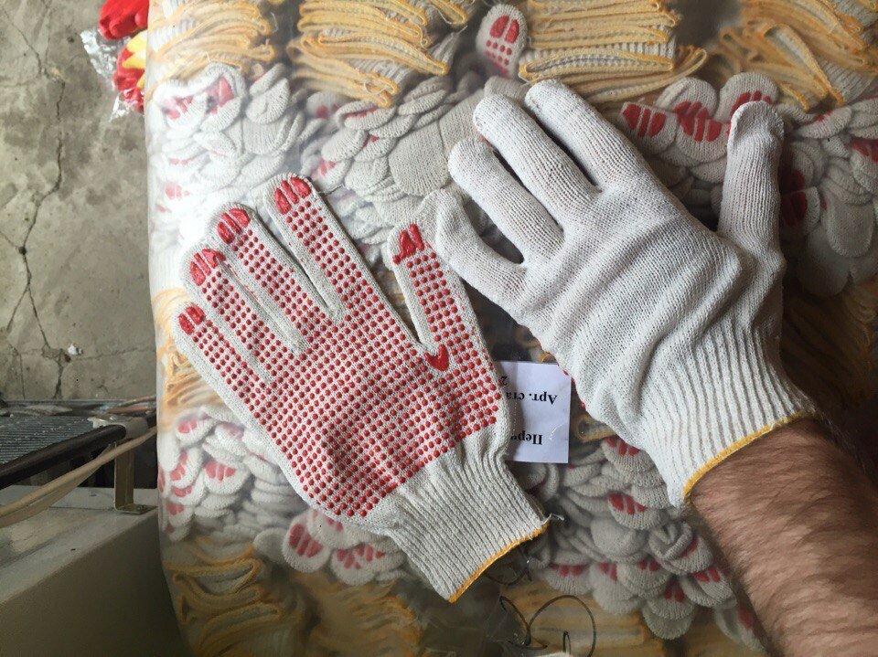 - Перчатки ХБ с ПВХ 3 нити 9₽