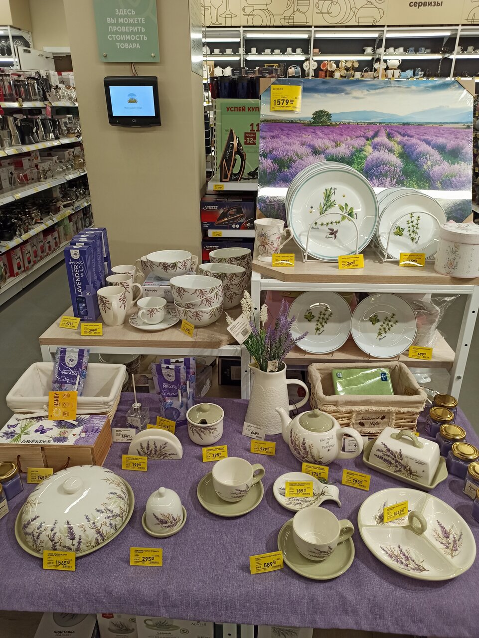 - Хороший отдел посуды и постельных принадлежностей.